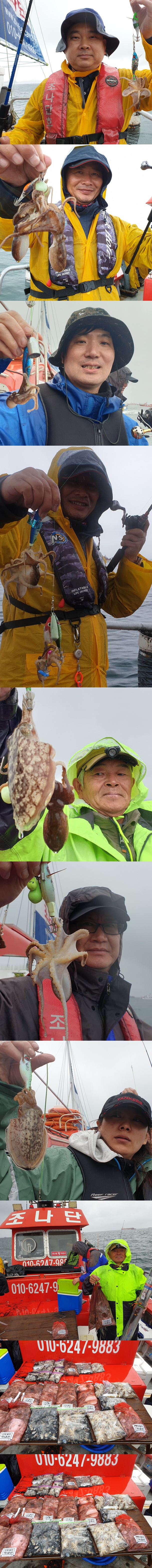 포인트 이동~ 씨알좋은 갑오징어와 들쭉날쭉 크기의 쭈꾸미가 쉼없이 나오네요.