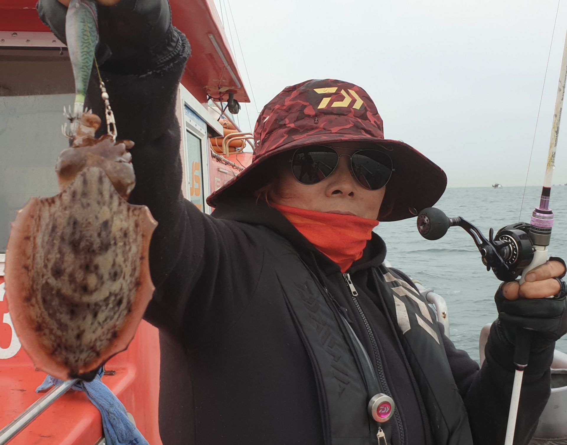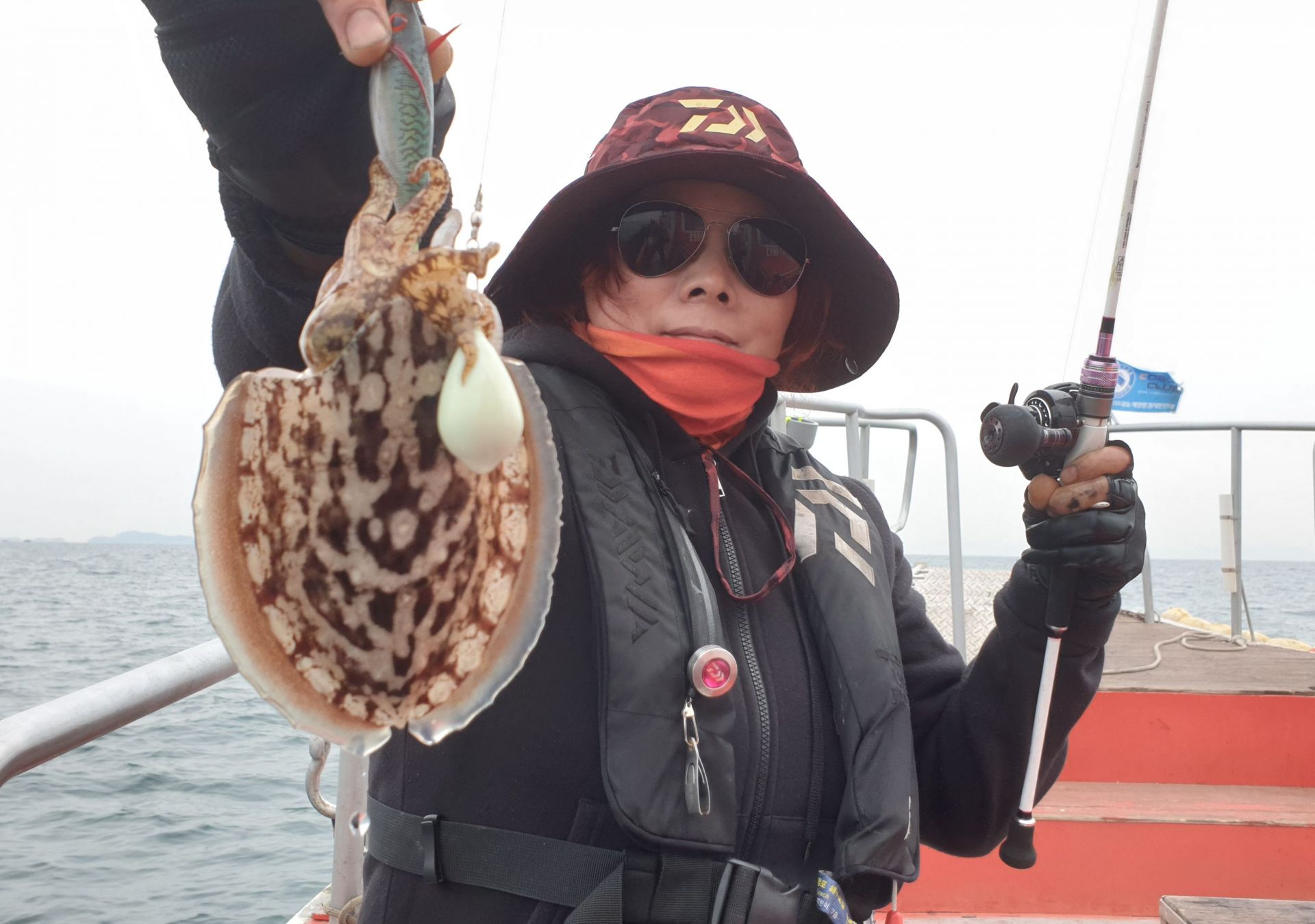 오호라~  씨알굵은 갑오징어가 연타석 올라옵니다.
