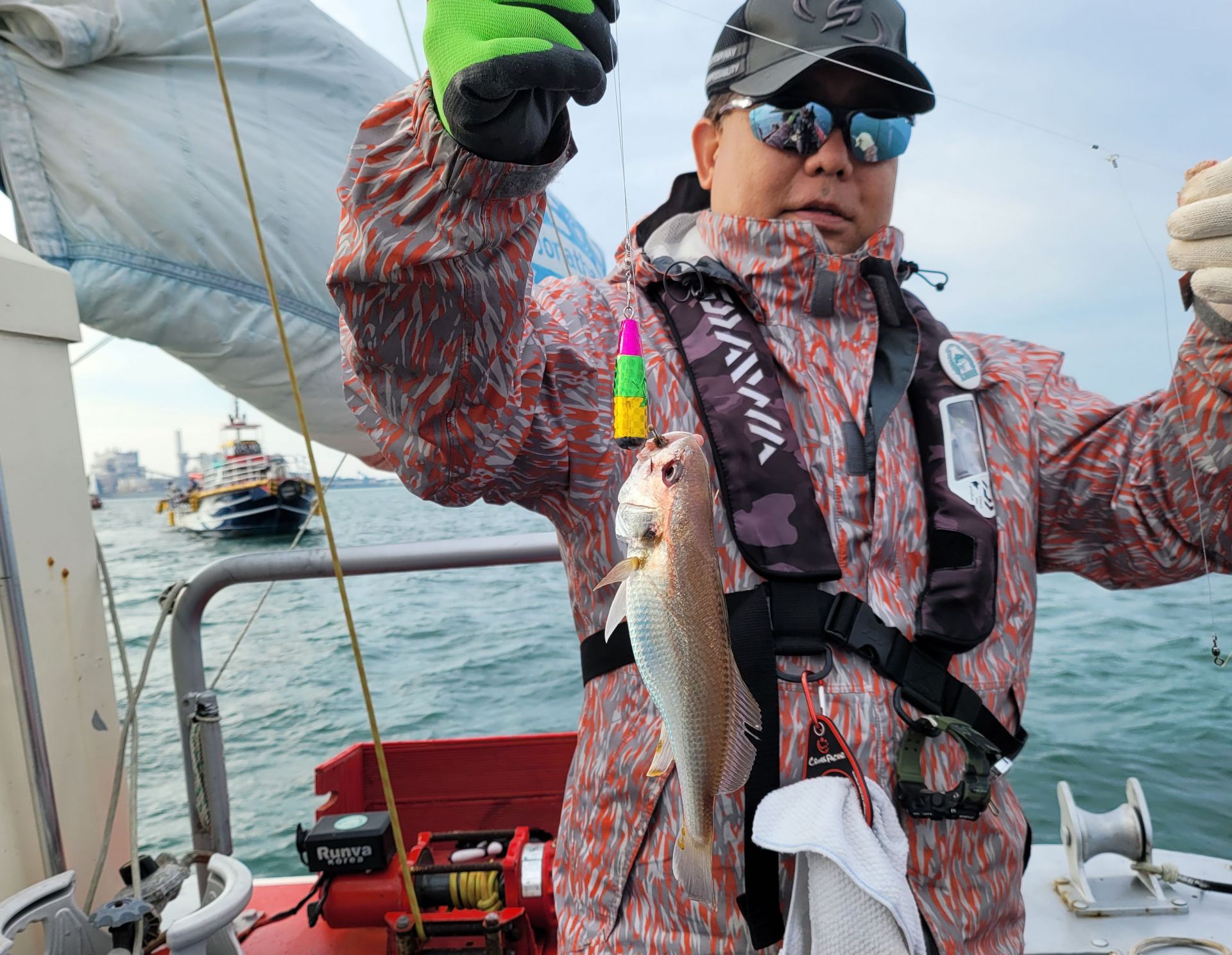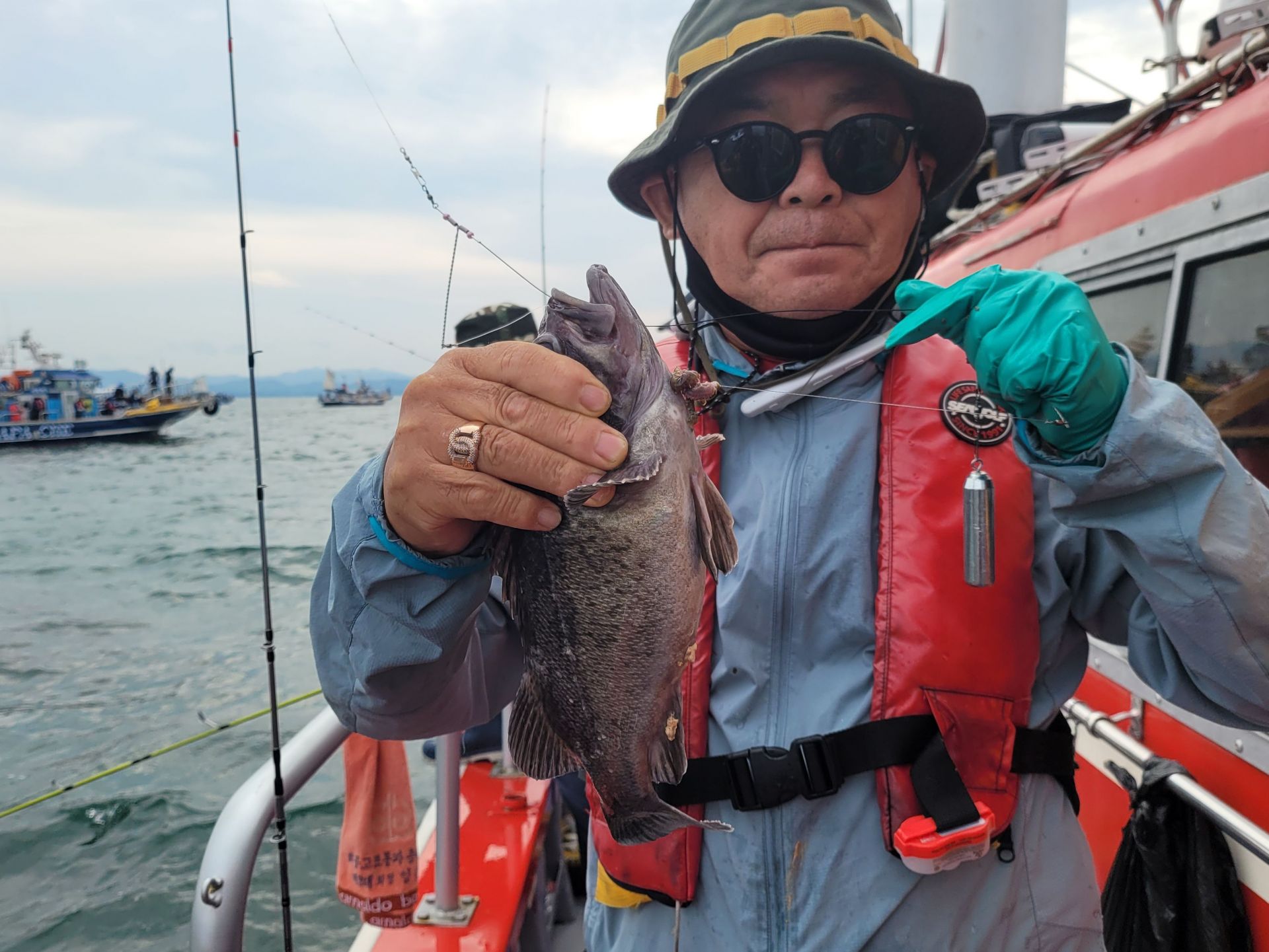 1시간 정도의 포인트로 이동하여 도착하니 벌써 여러척의 낚시배들이 백조기 낚시에 열낚중...